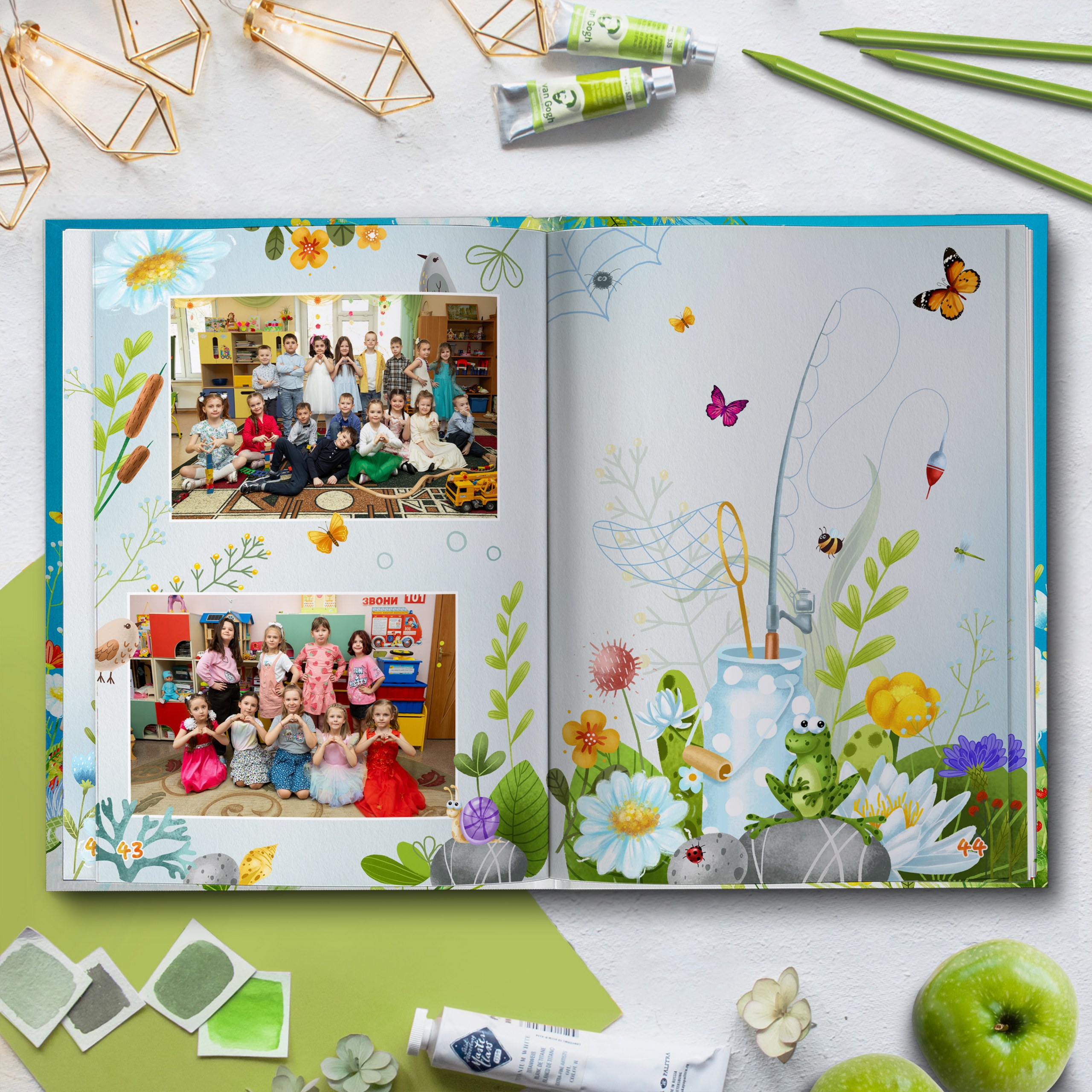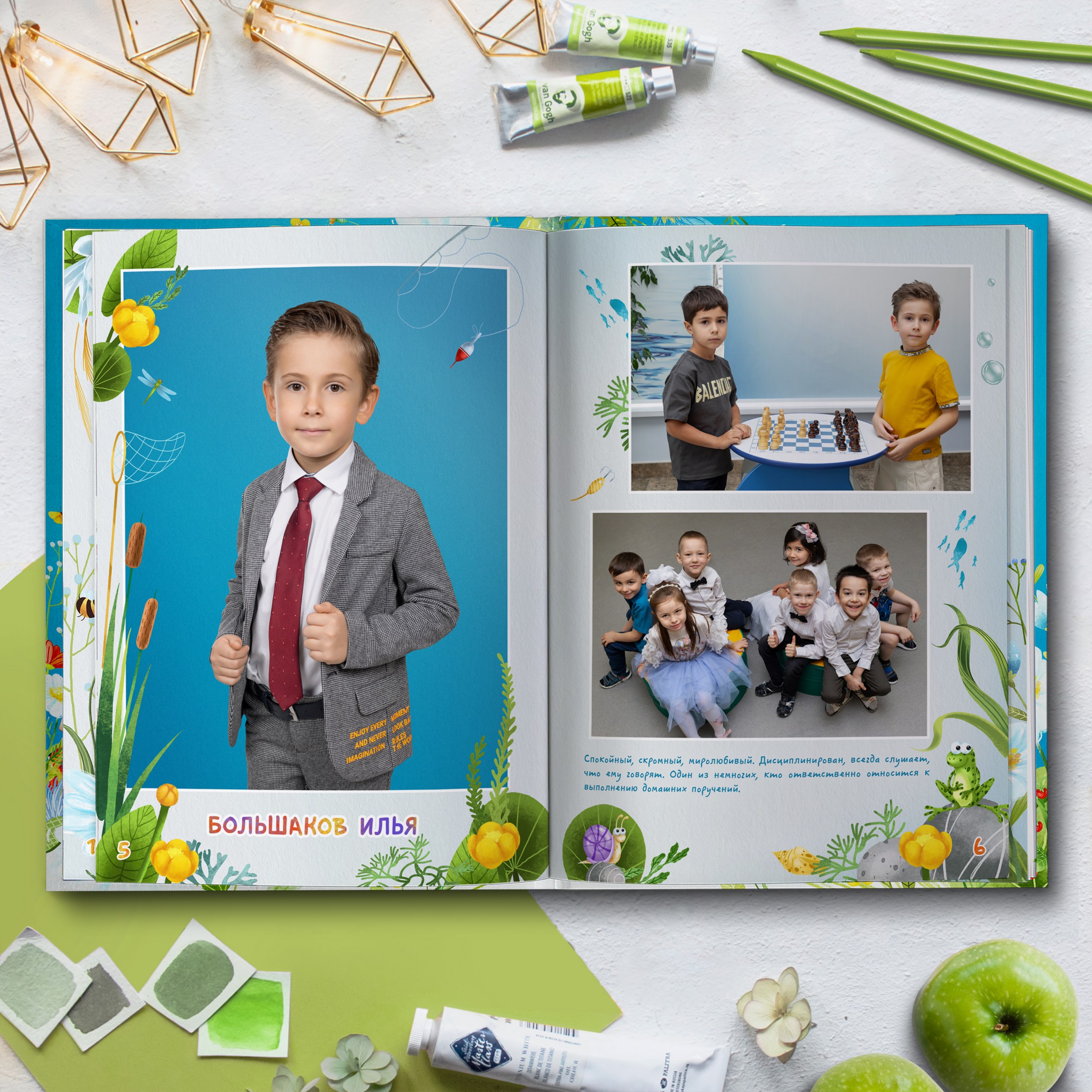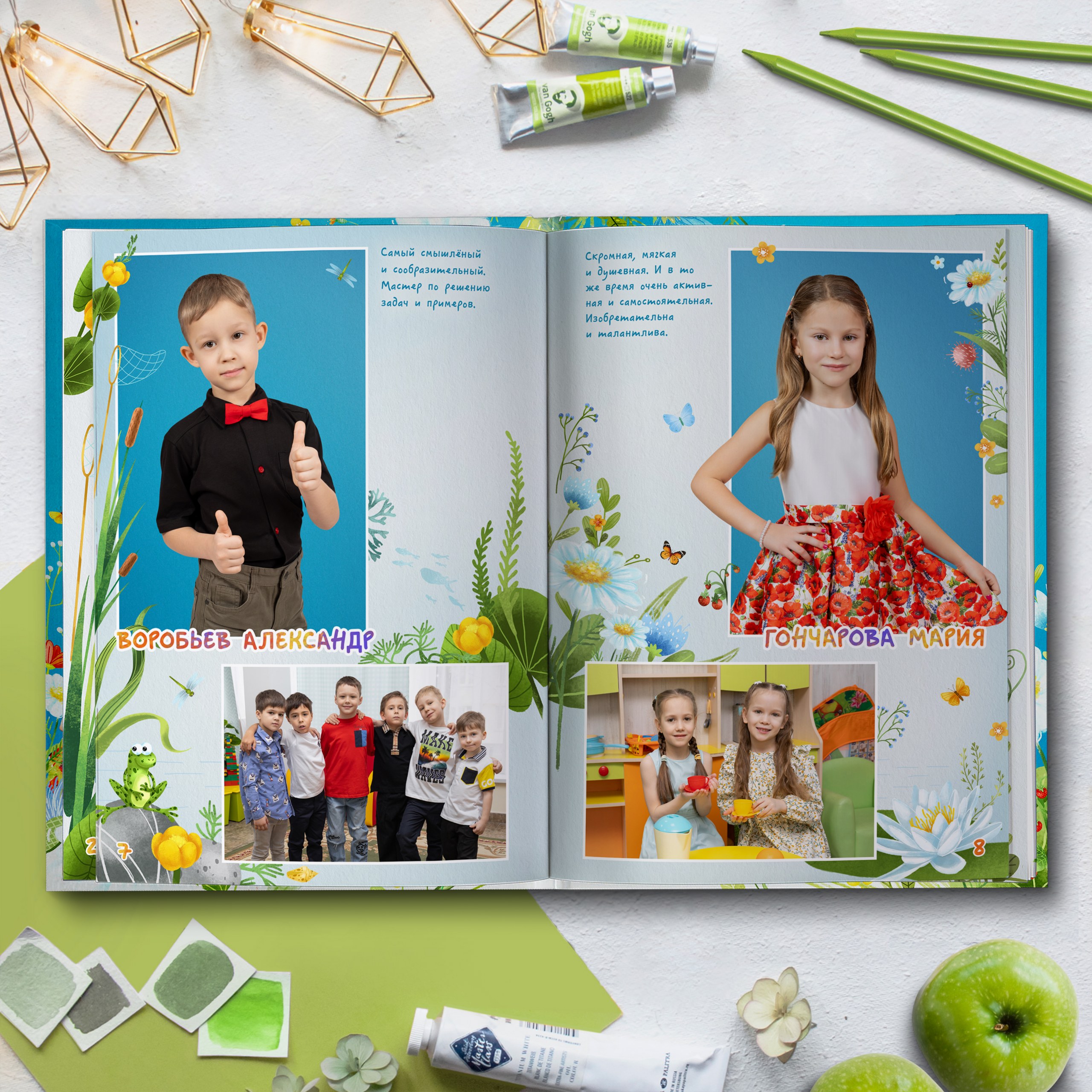 3ий разворот и далее — по 2 личные страницы на ребенка