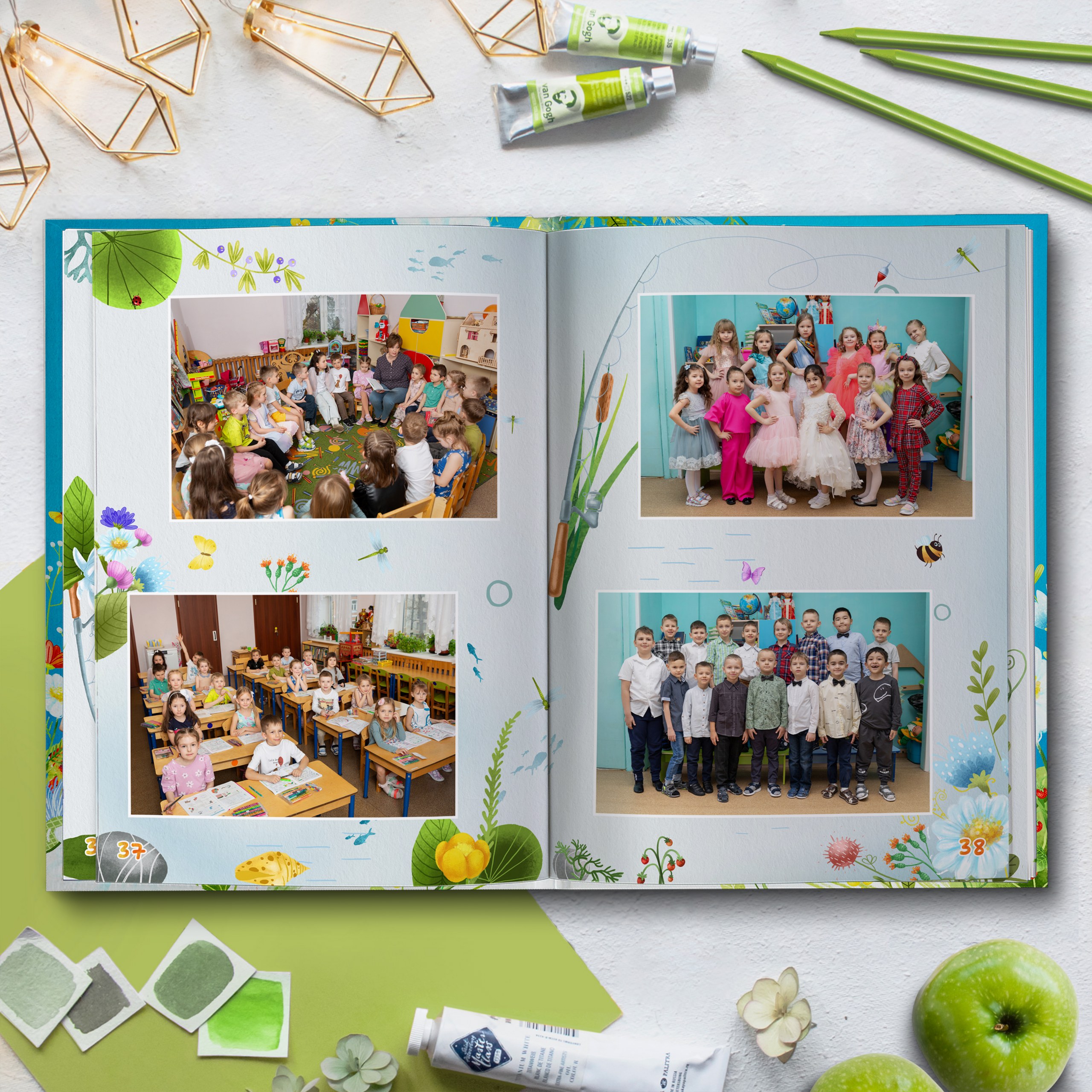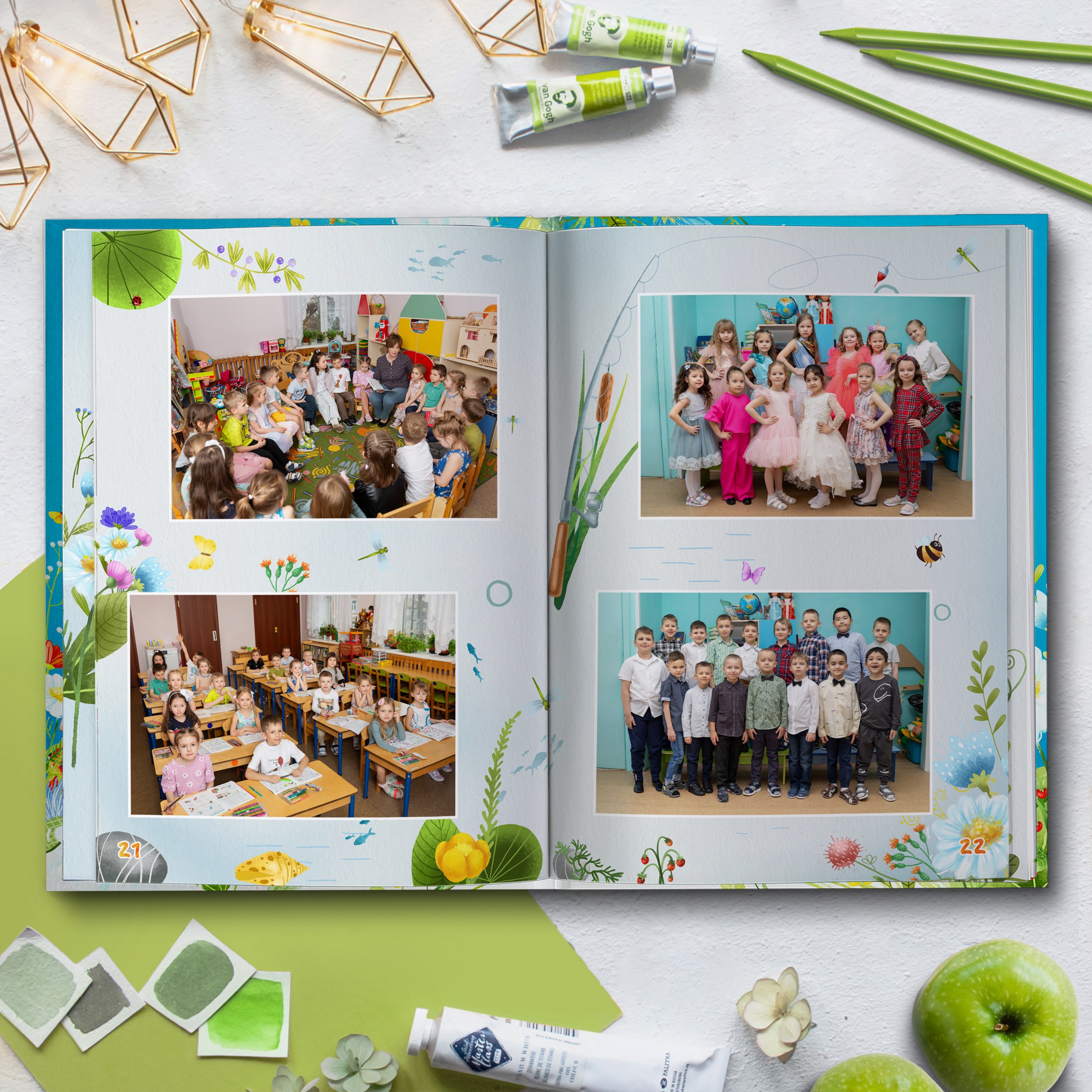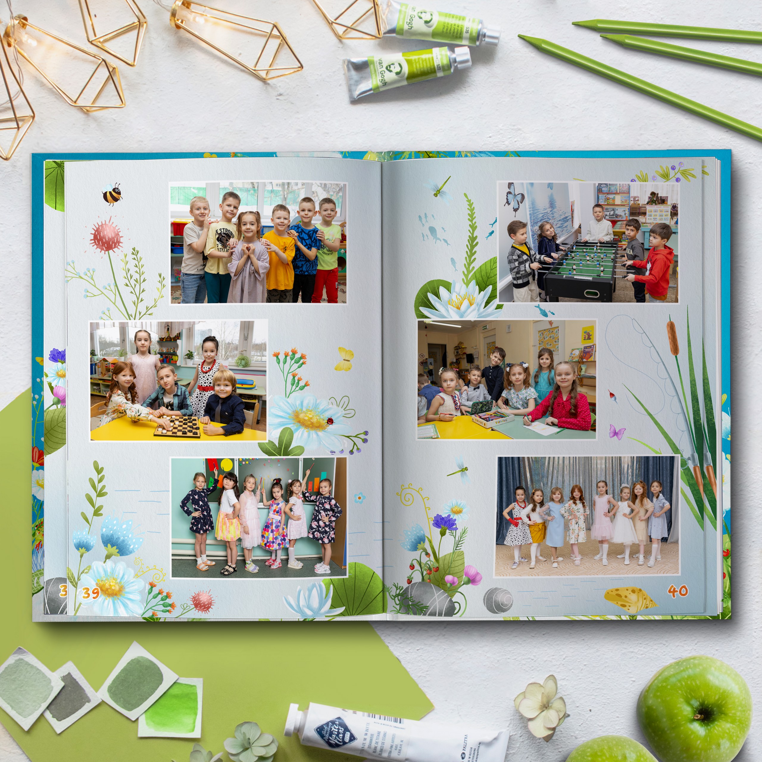 3ий разворот и далее — по 2 личные страницы на ребенка