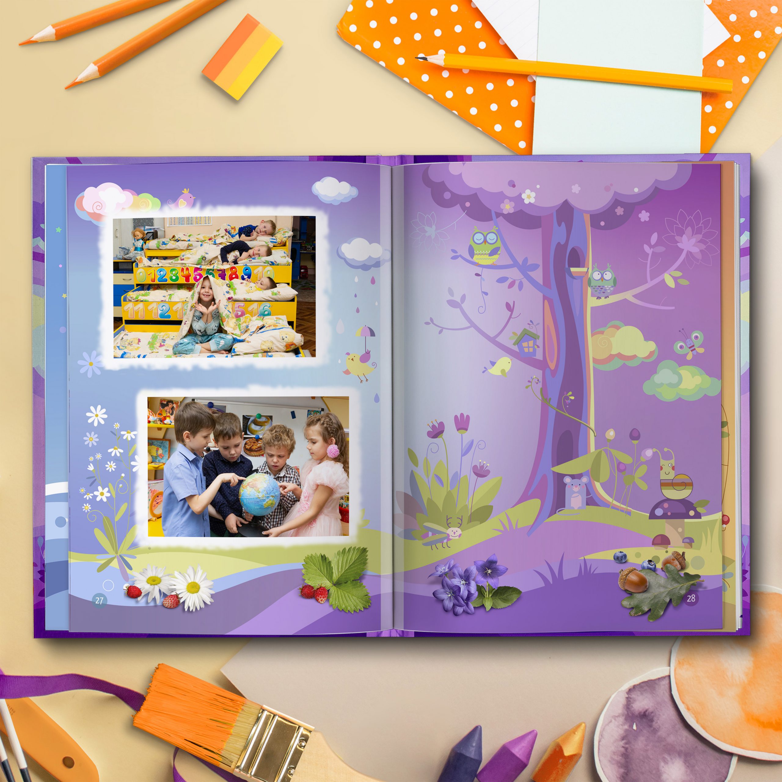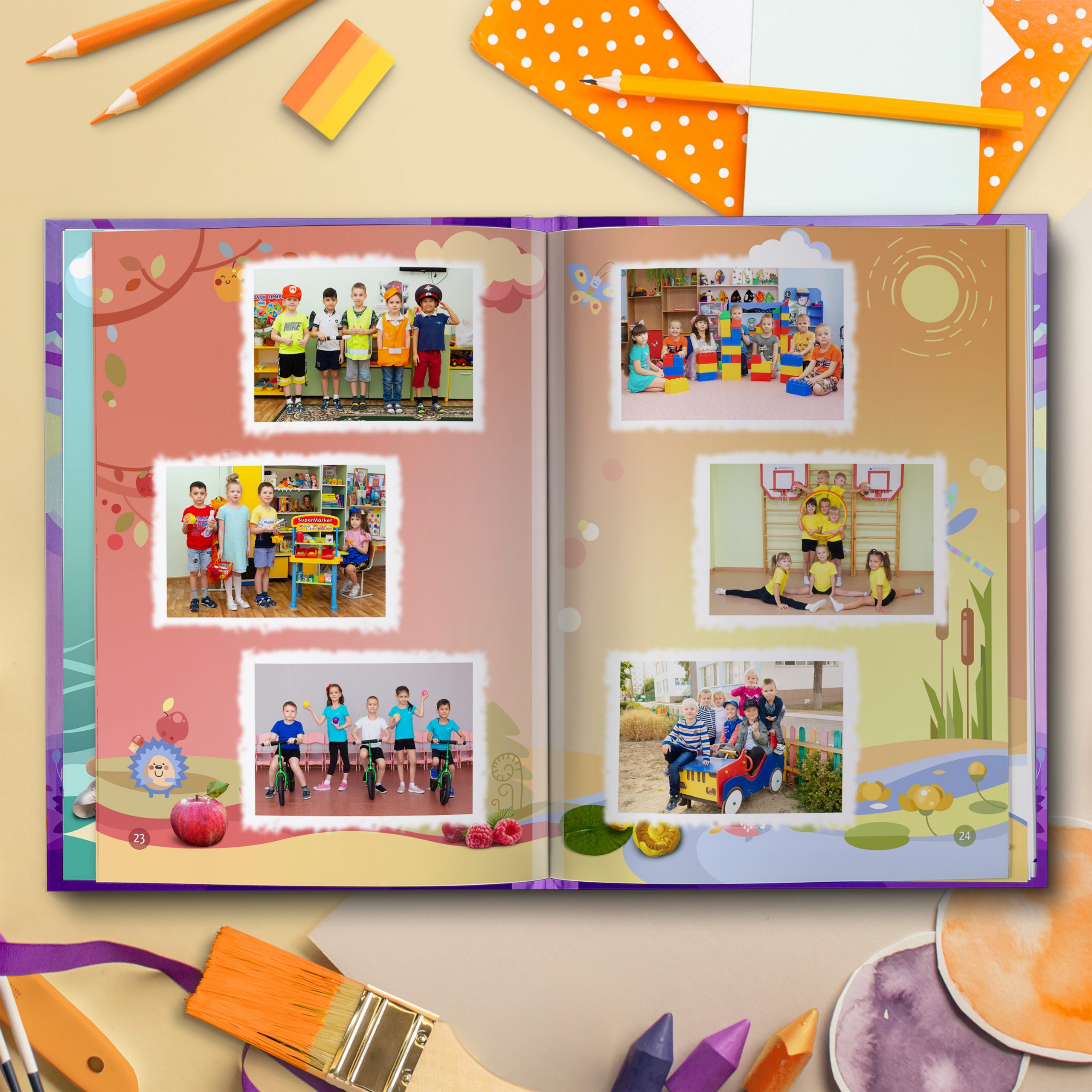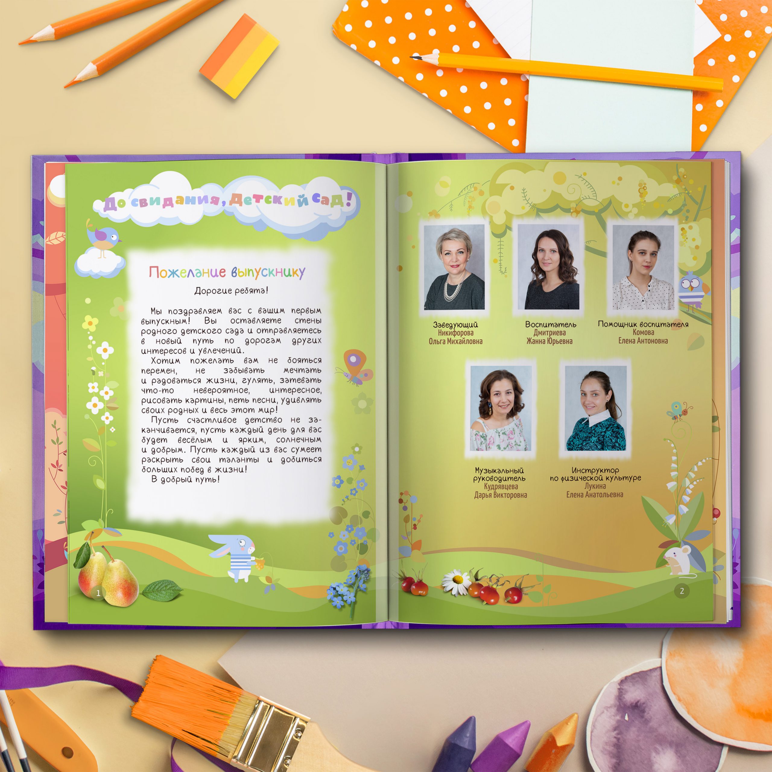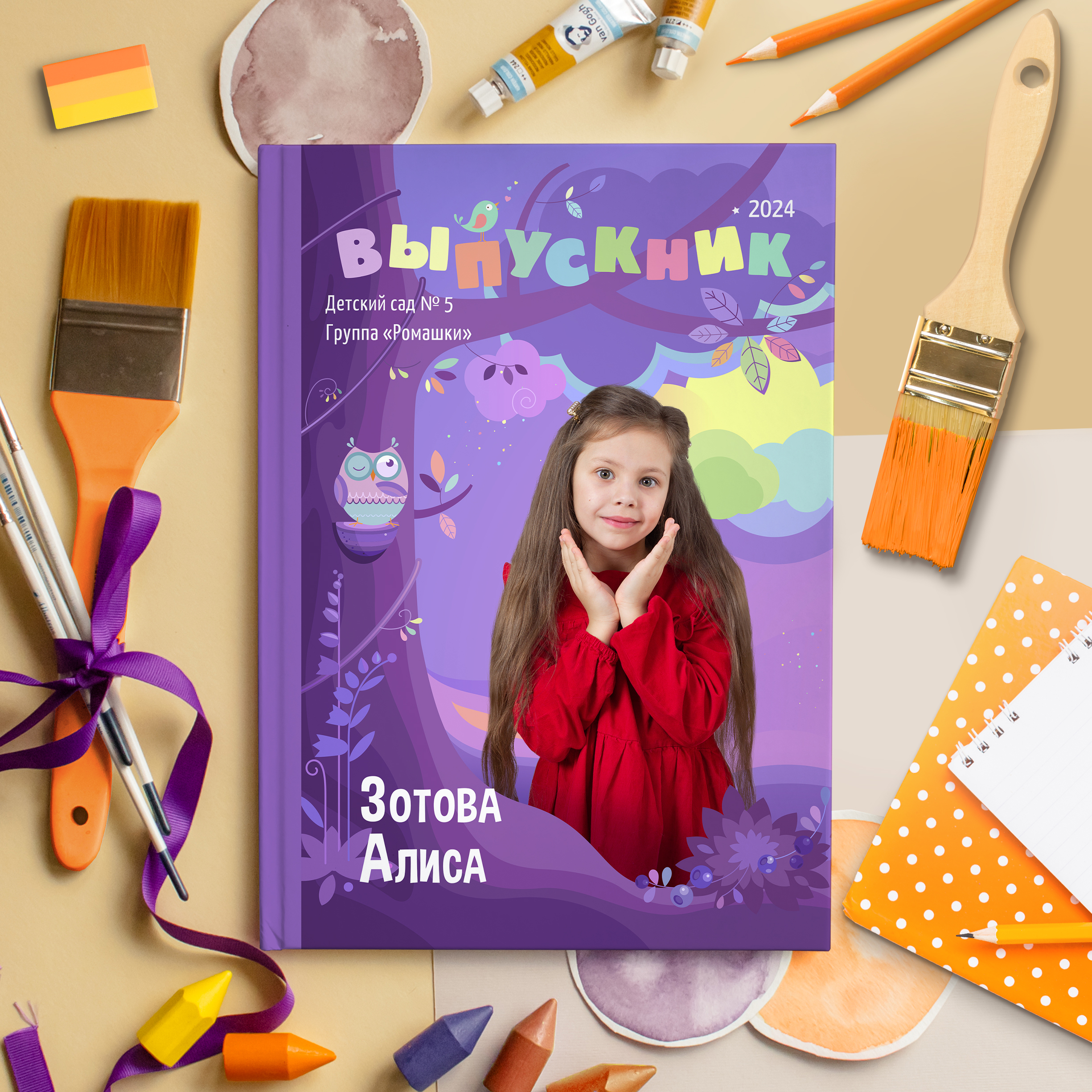 Веселые иллюстрации в лучшем стиле книжек со сказками, узнаваемые персонажи, приятная цветовая гамма — отличный выбор для выпускной книги вашему ребёнку!
