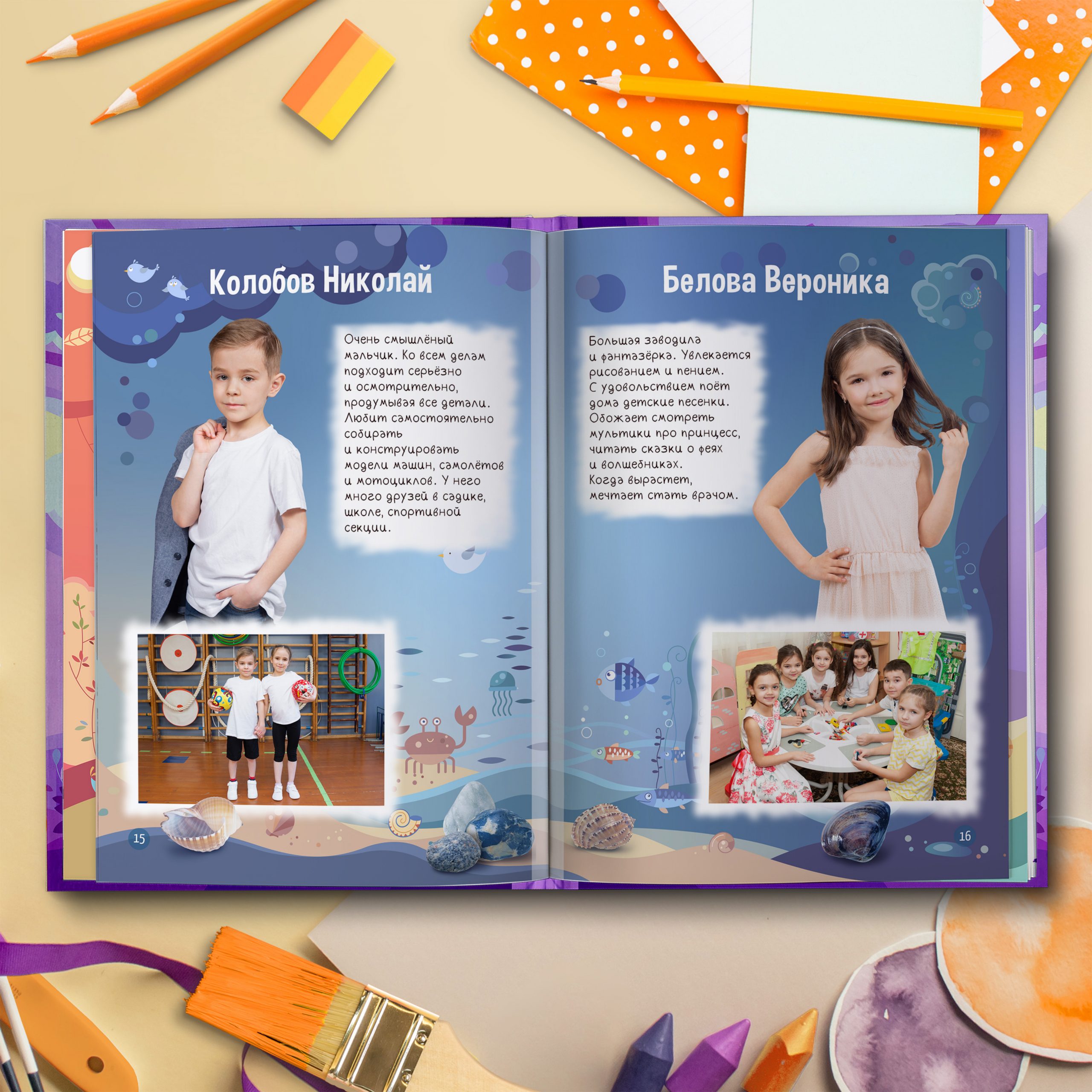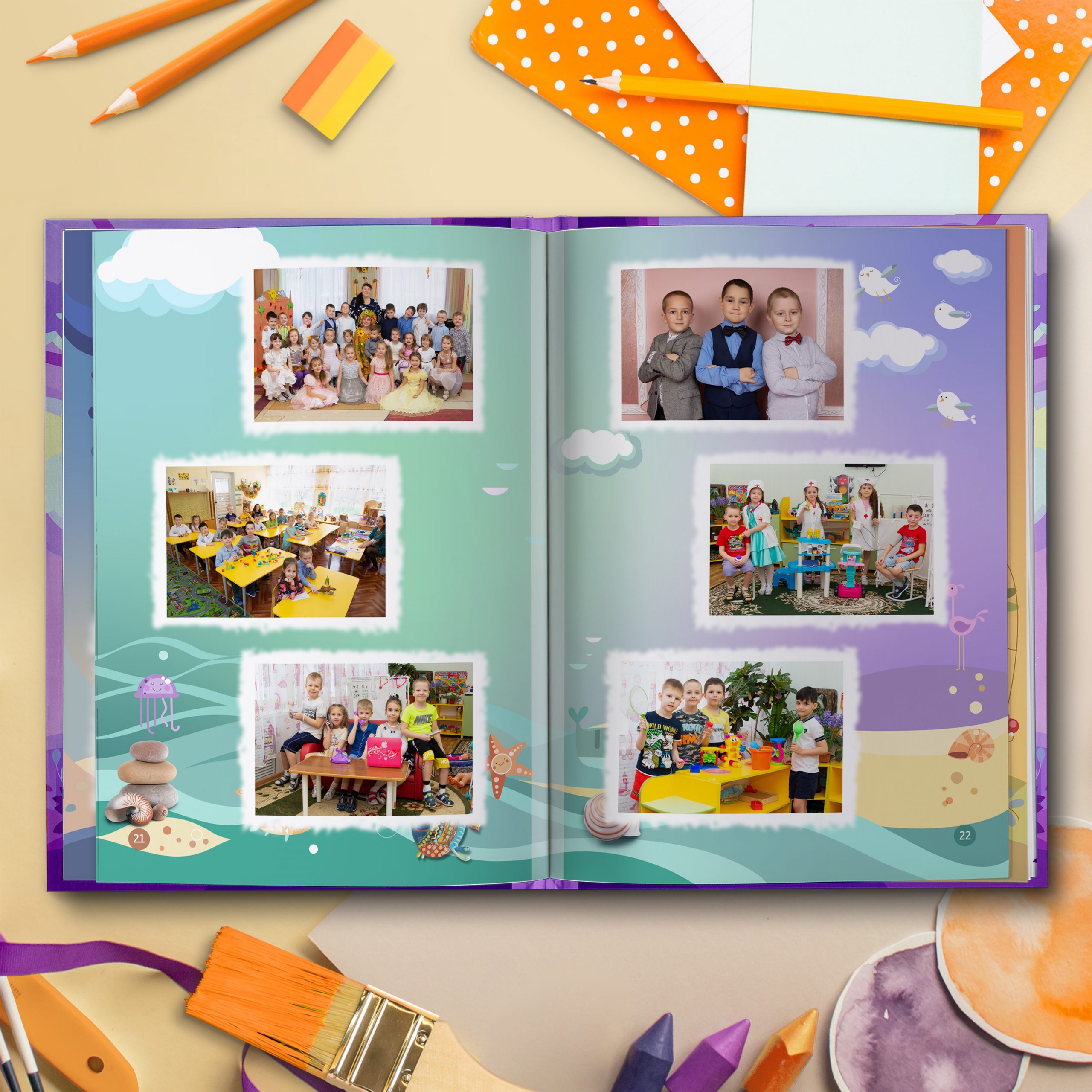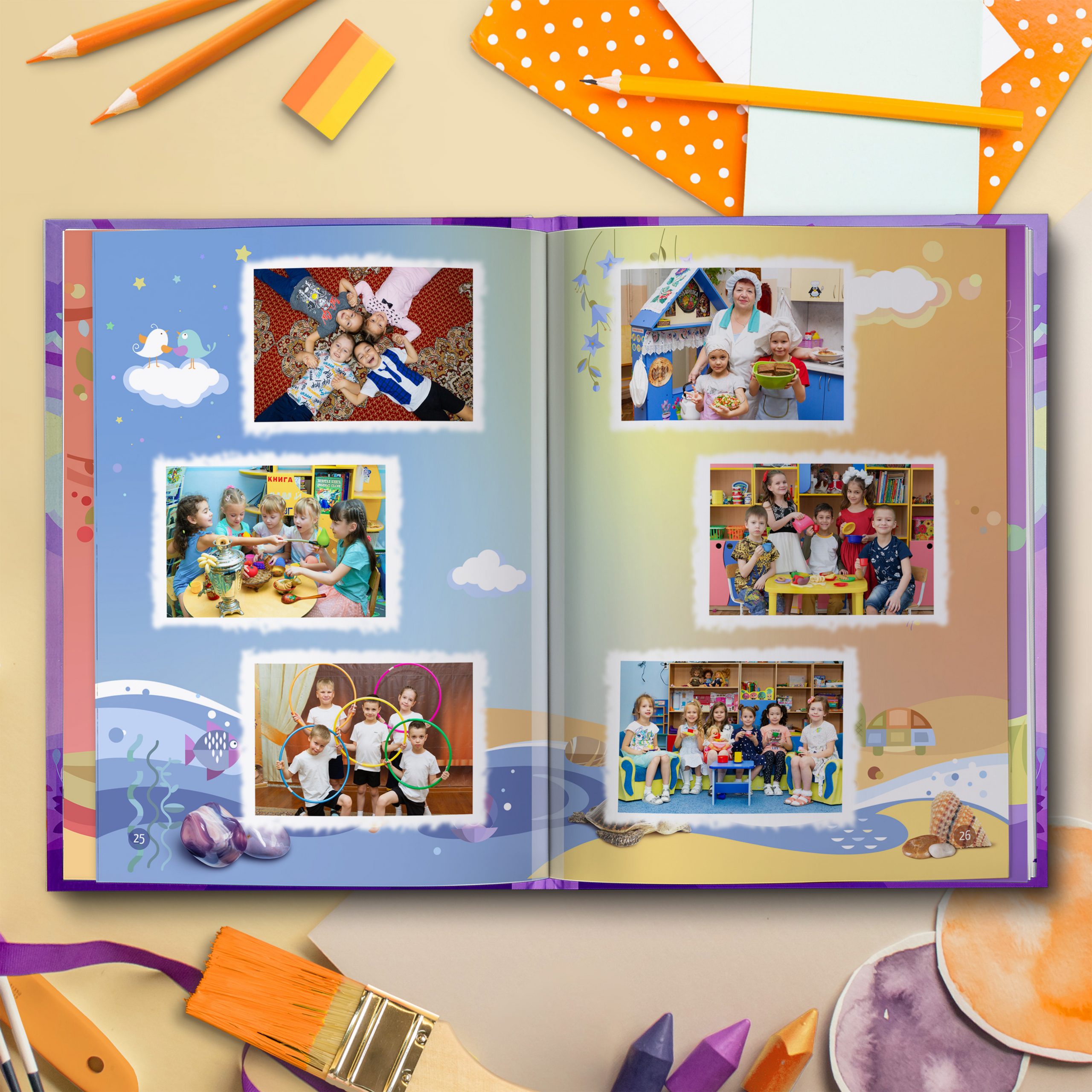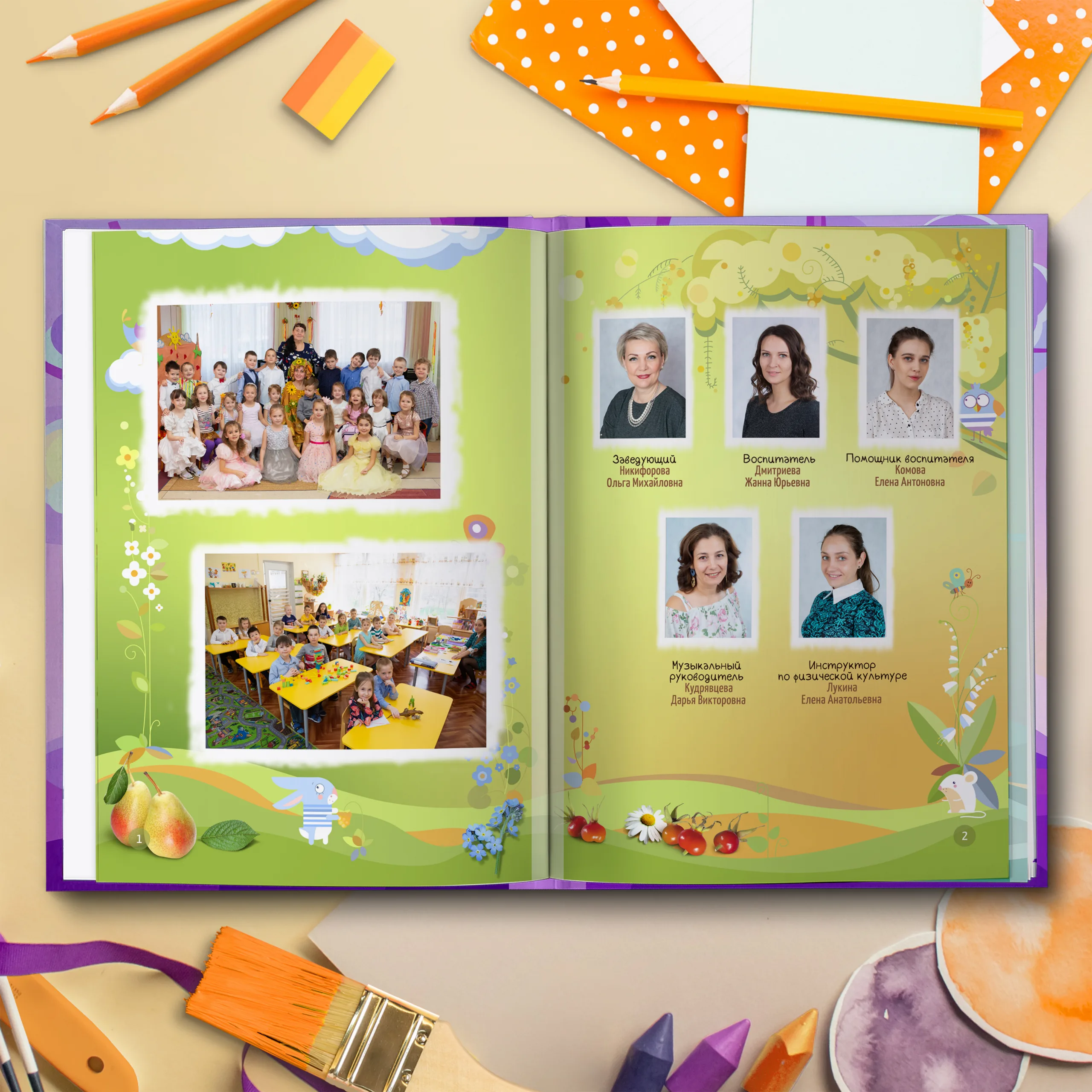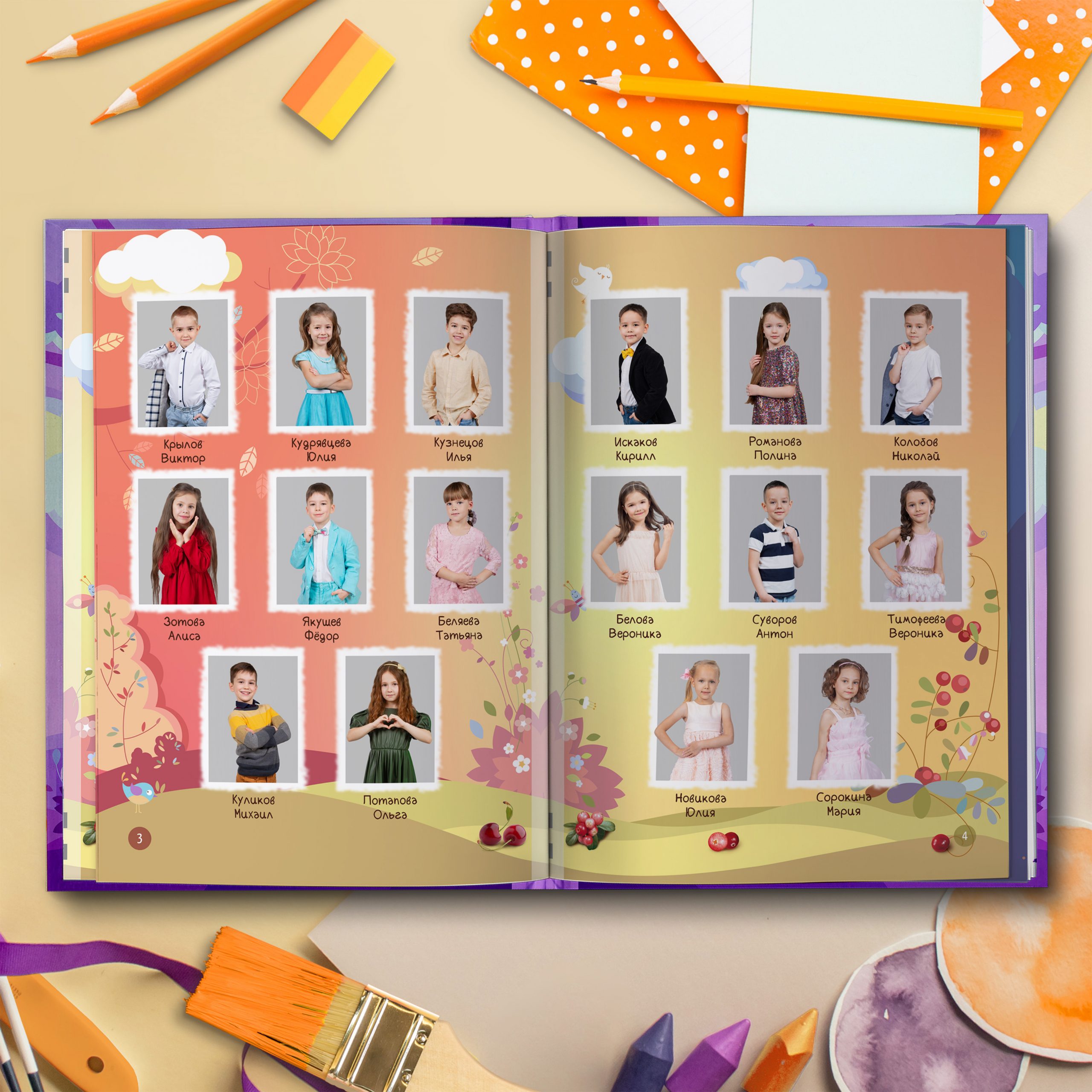 Веселые иллюстрации в лучшем стиле книжек со сказками, узнаваемые персонажи, приятная цветовая гамма — отличный выбор для выпускной книги вашему ребёнку!
