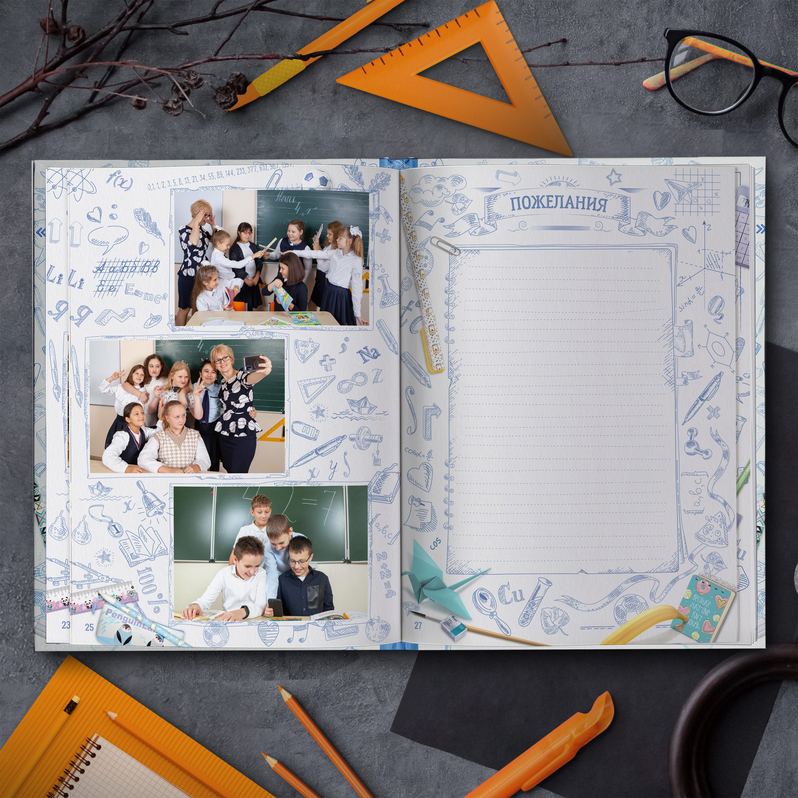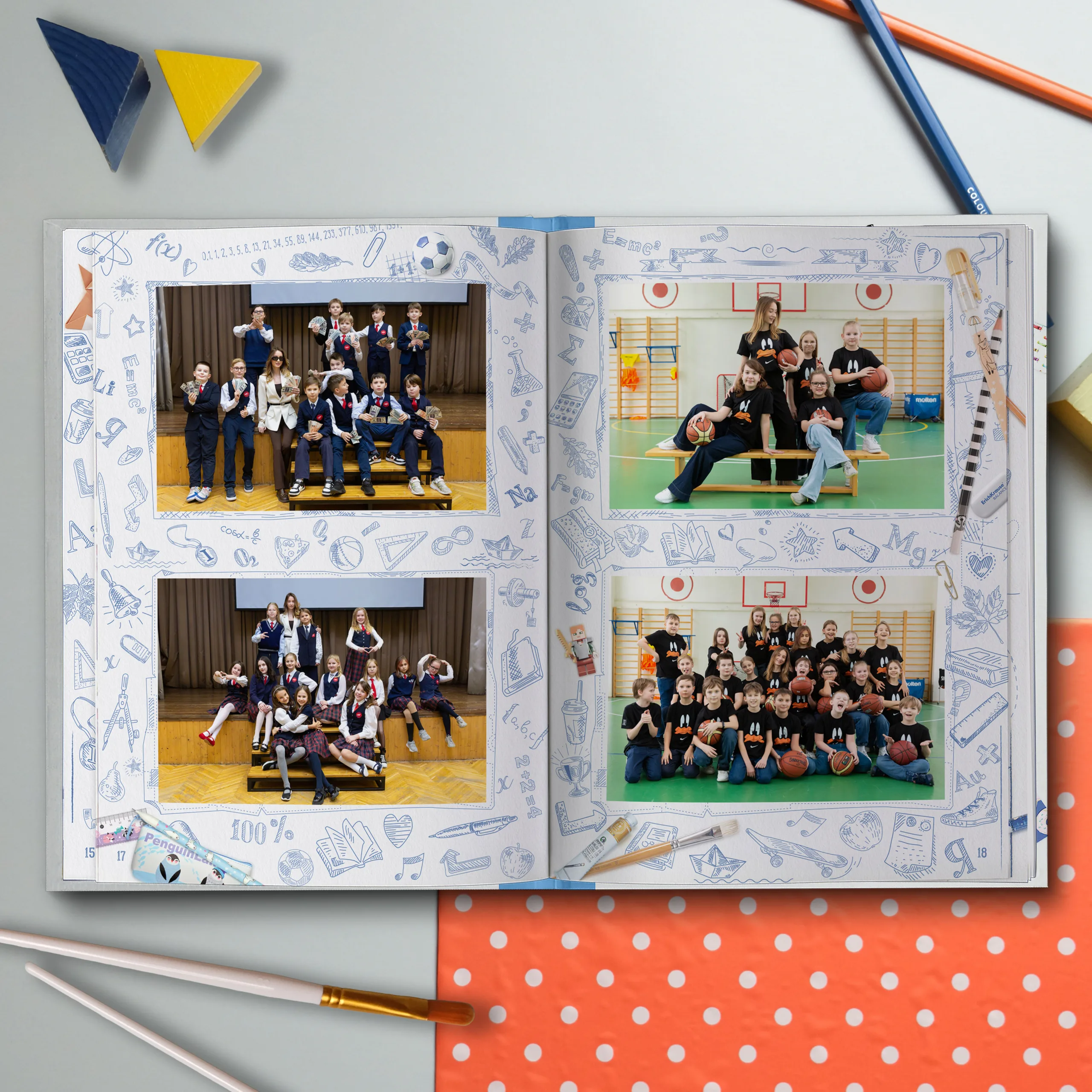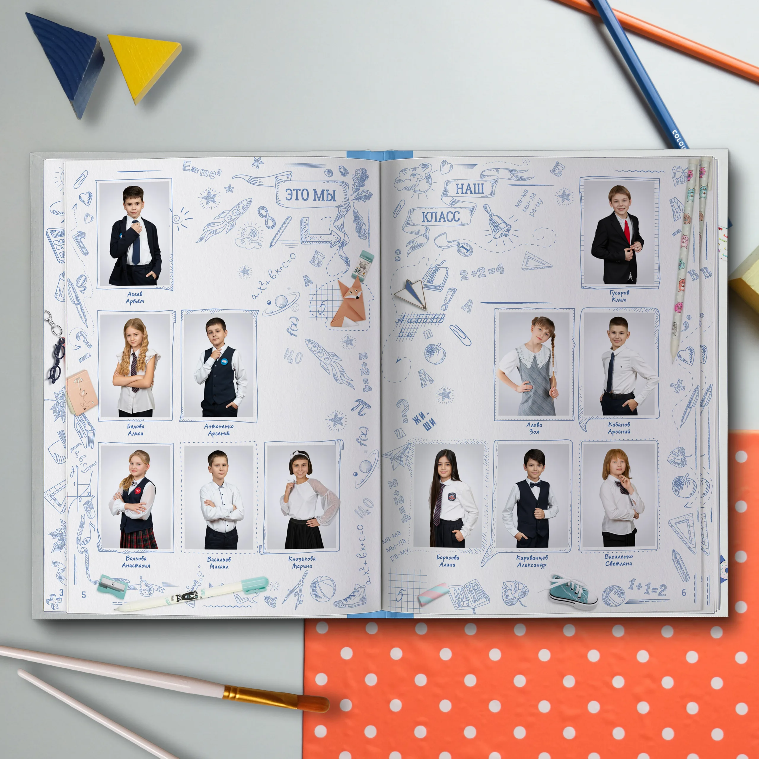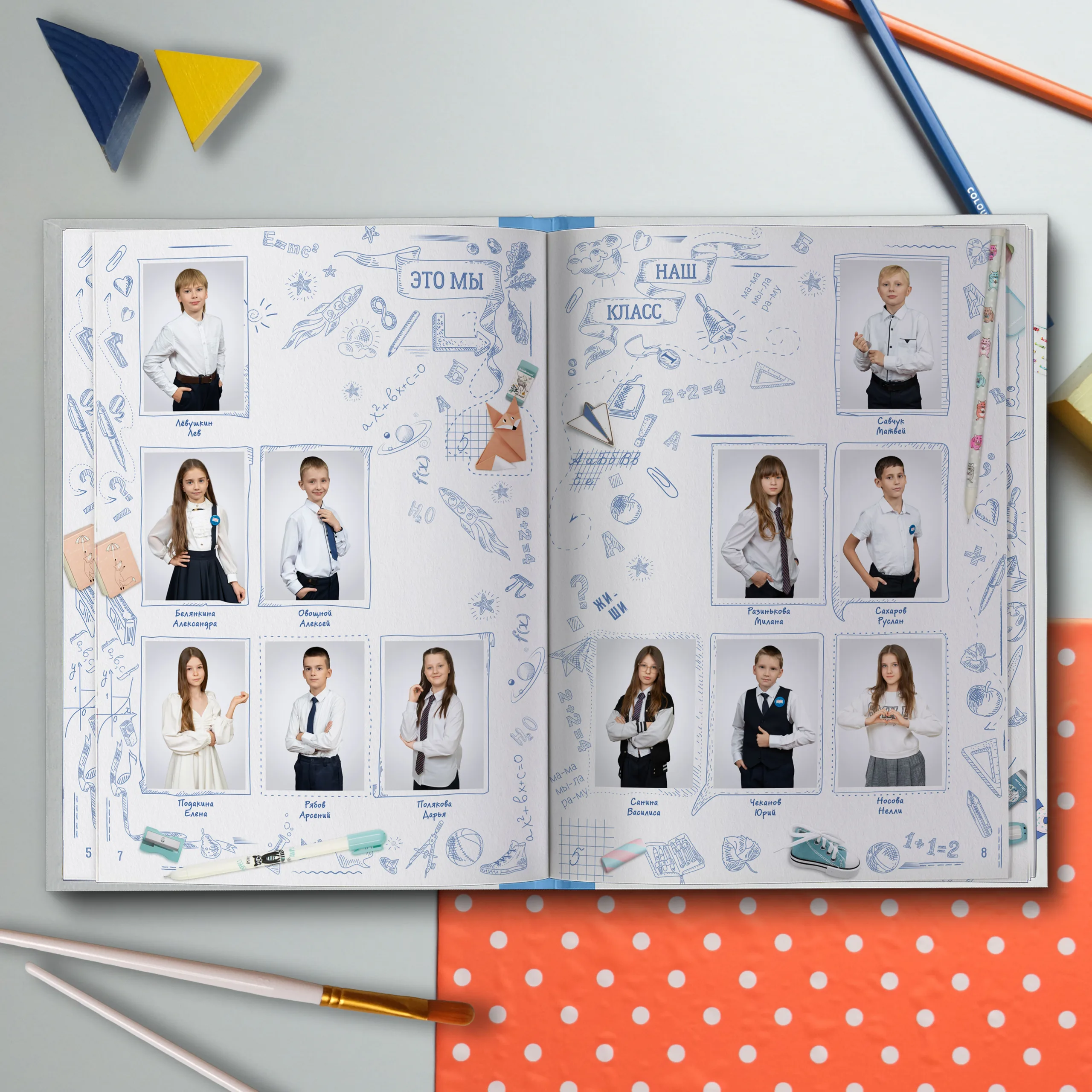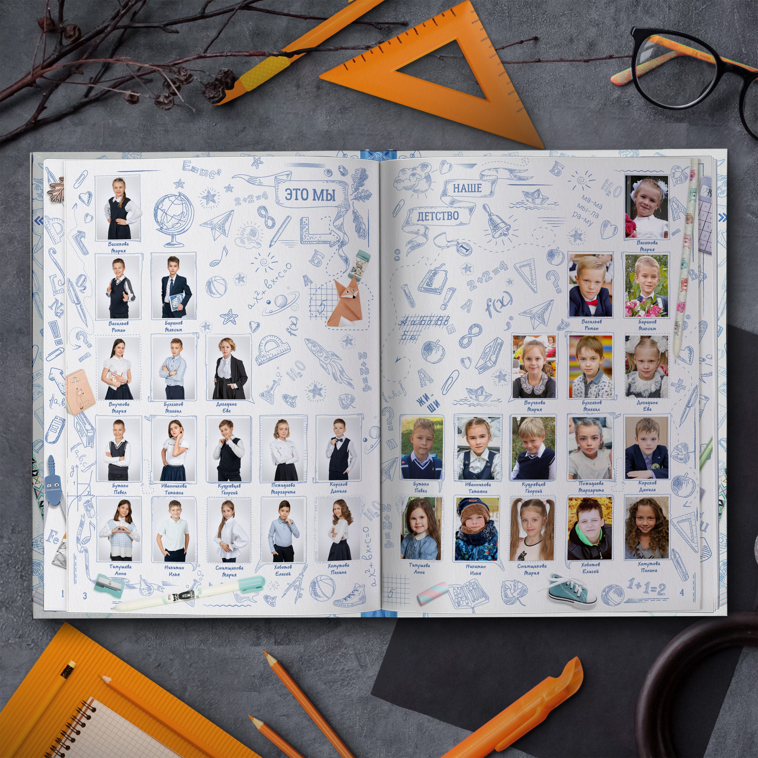 Последние 3 разворота — общие репортажные фотографии класса (20шт.)