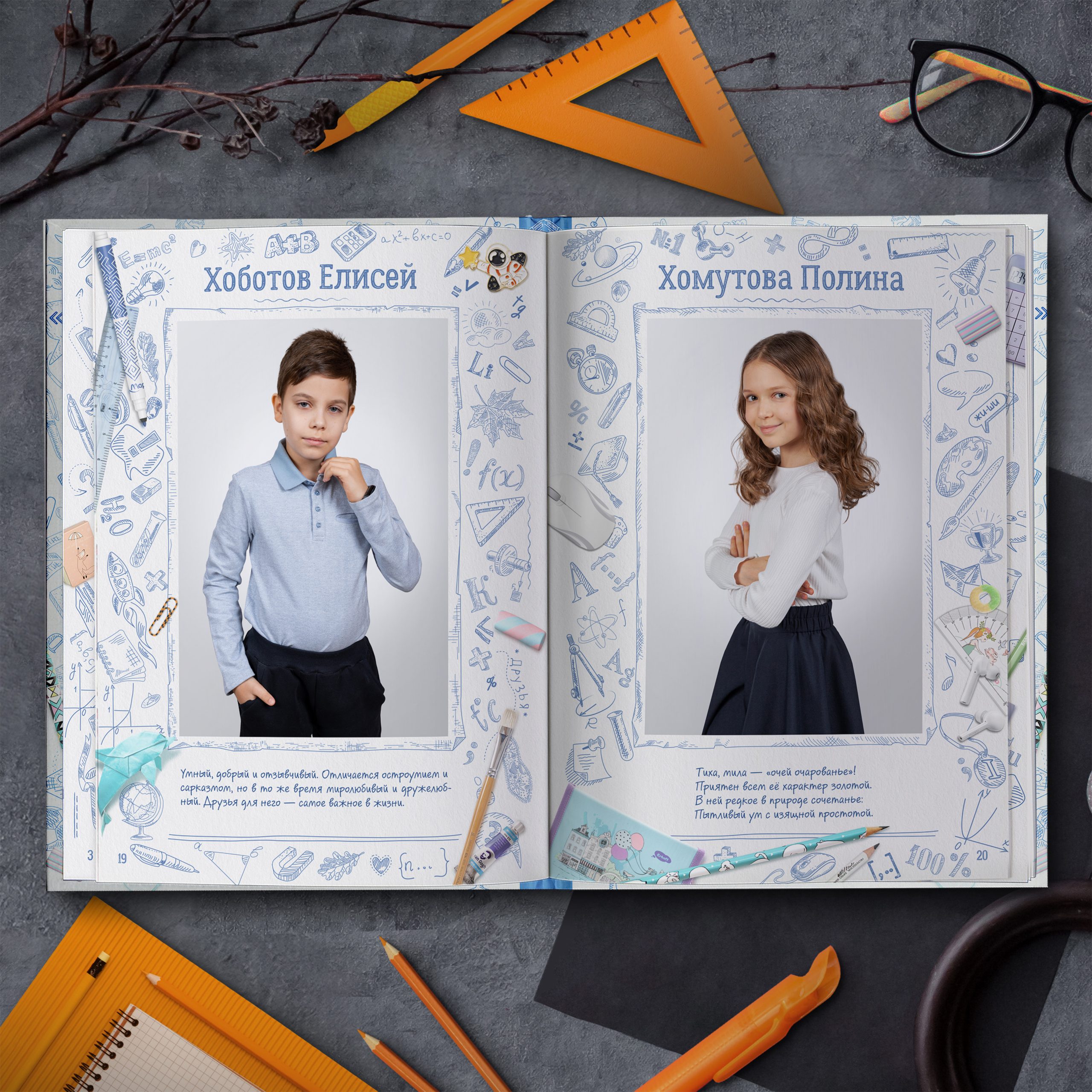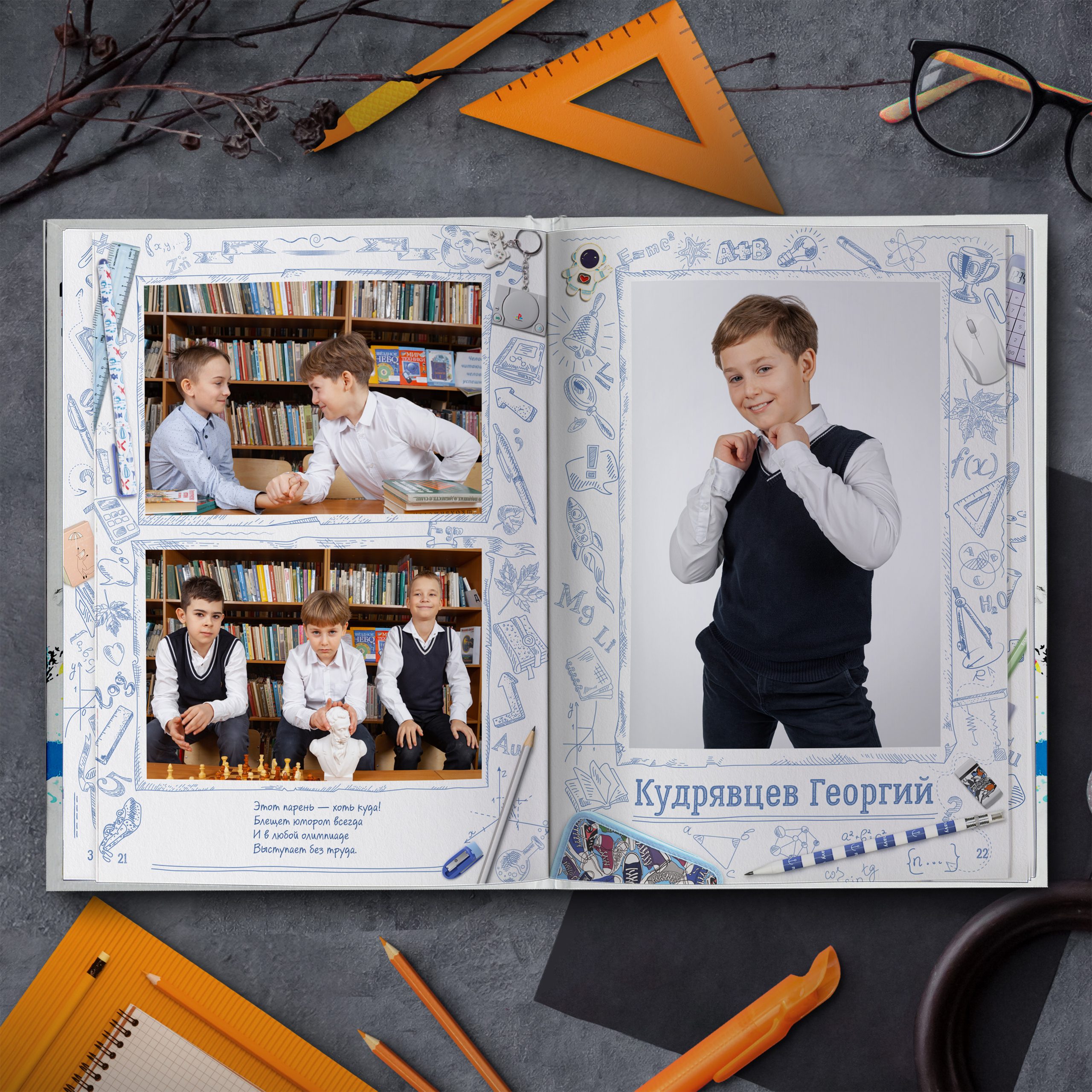 - Две личные страницы ученика с репортажными фото