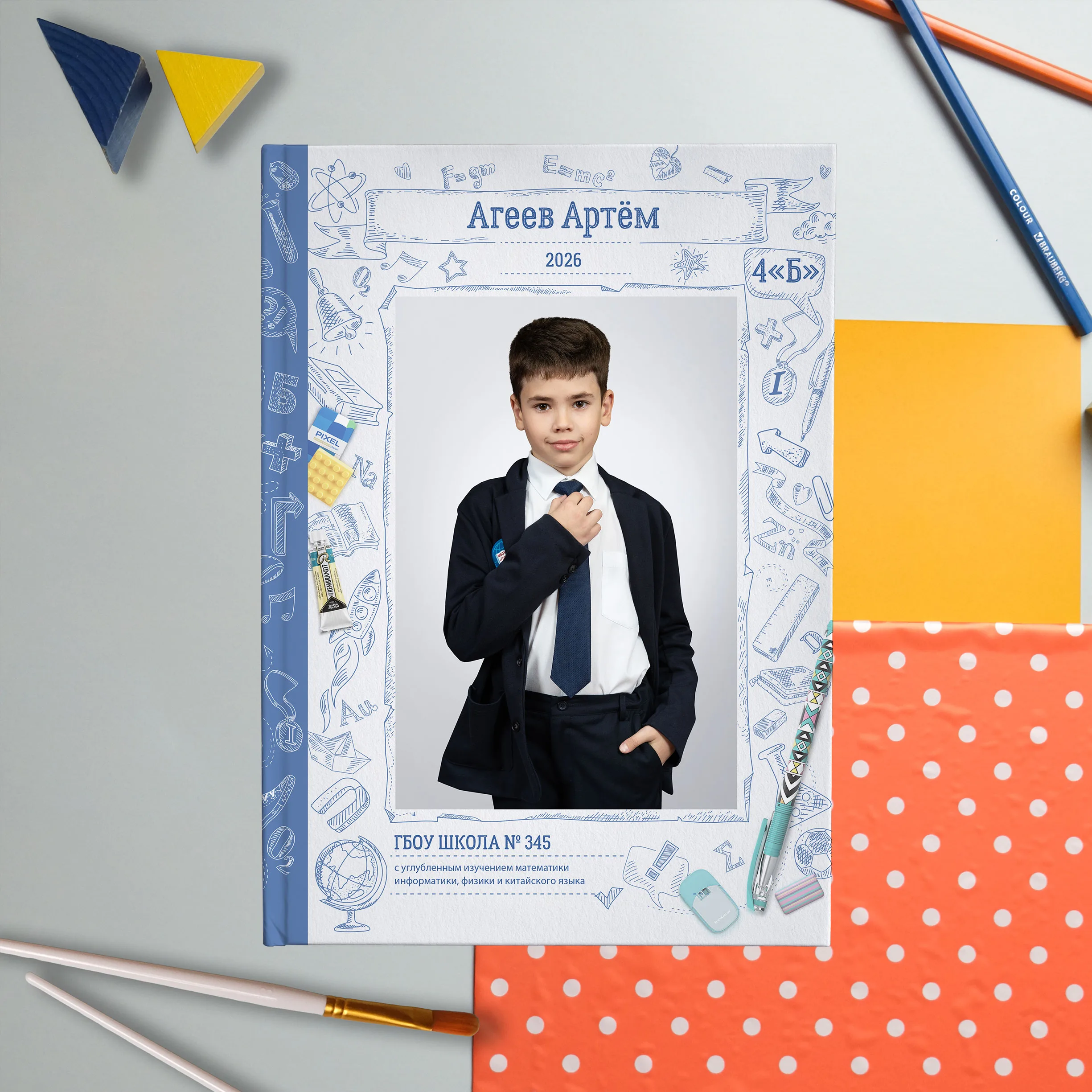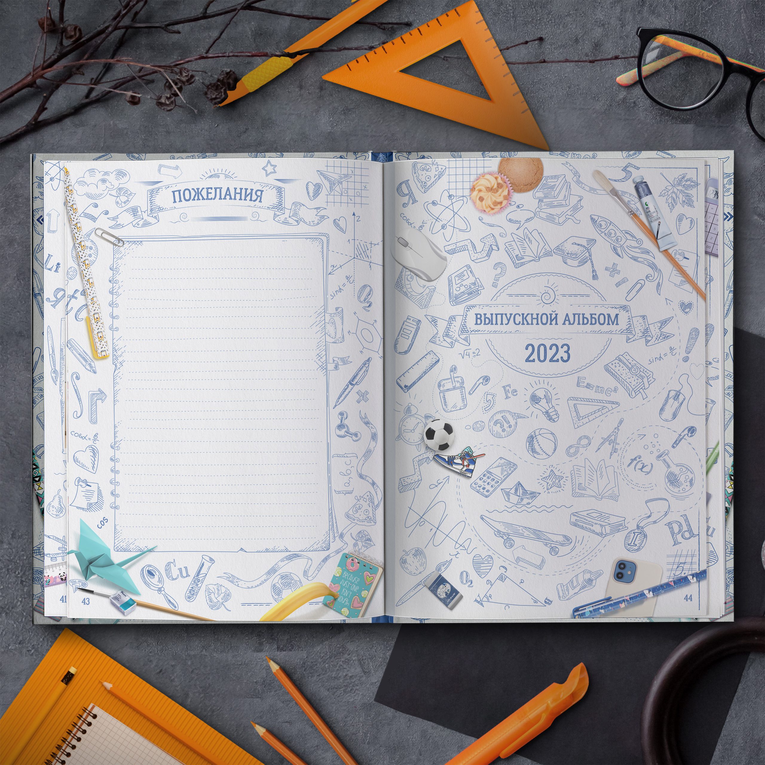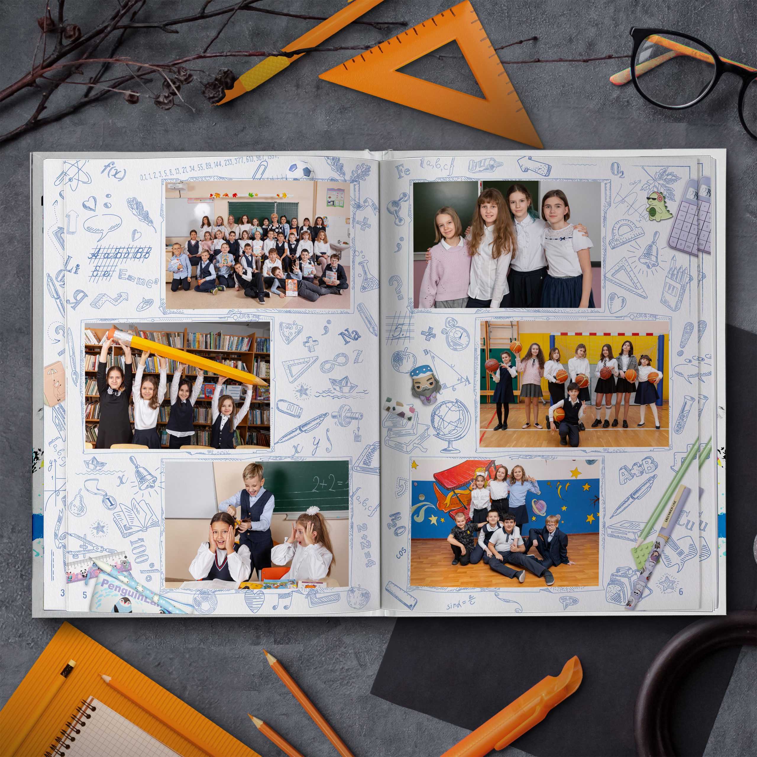 Полюбившийся многим дизайн теперь в светлом оформлении. Яркие кадры юности на фоне, напоминающем изрисованную тетрадь, непременно окунут выпускников в приятные воспоминания. Выпускной альбом в классном современном дизайне не оставит равнодушным ни одного ученика.