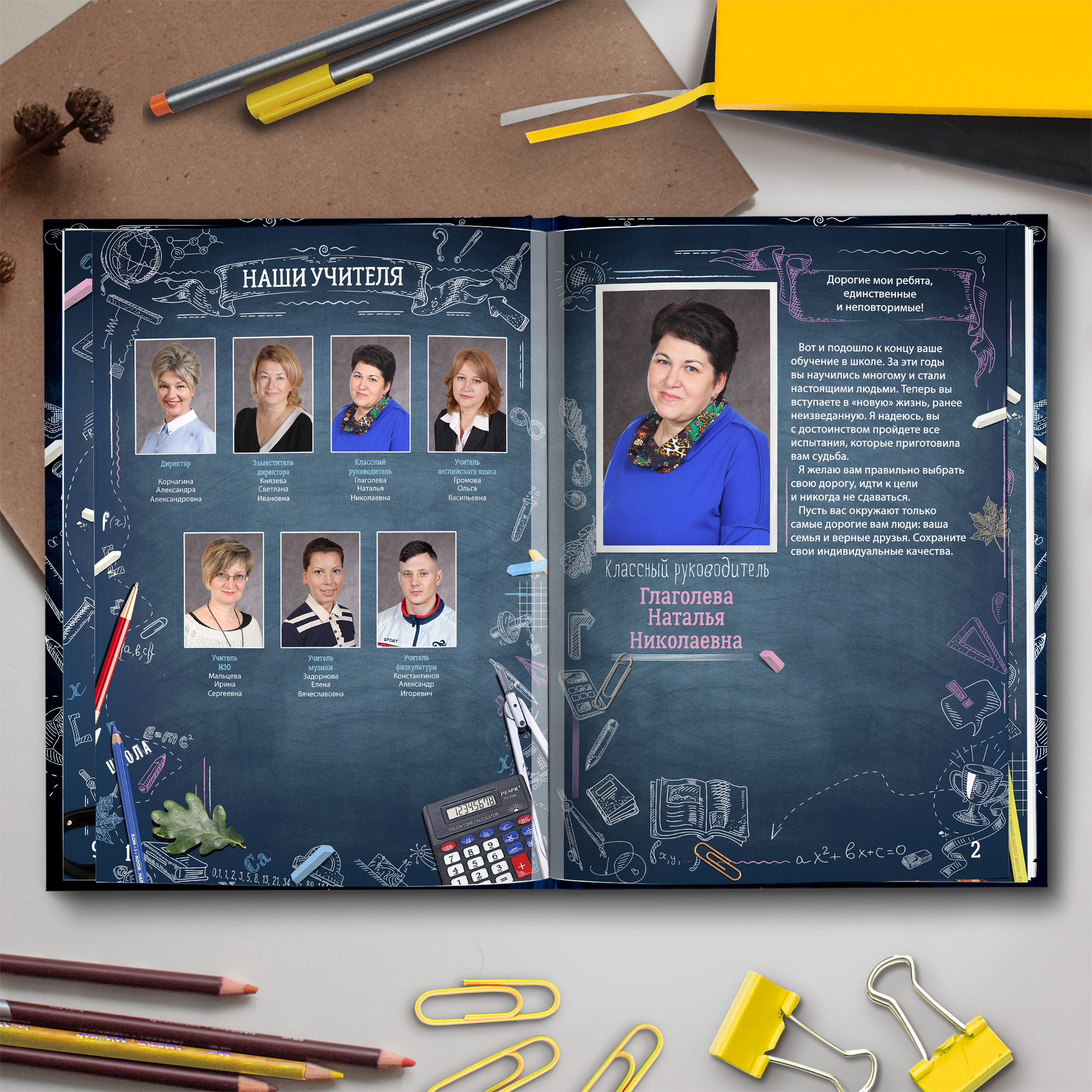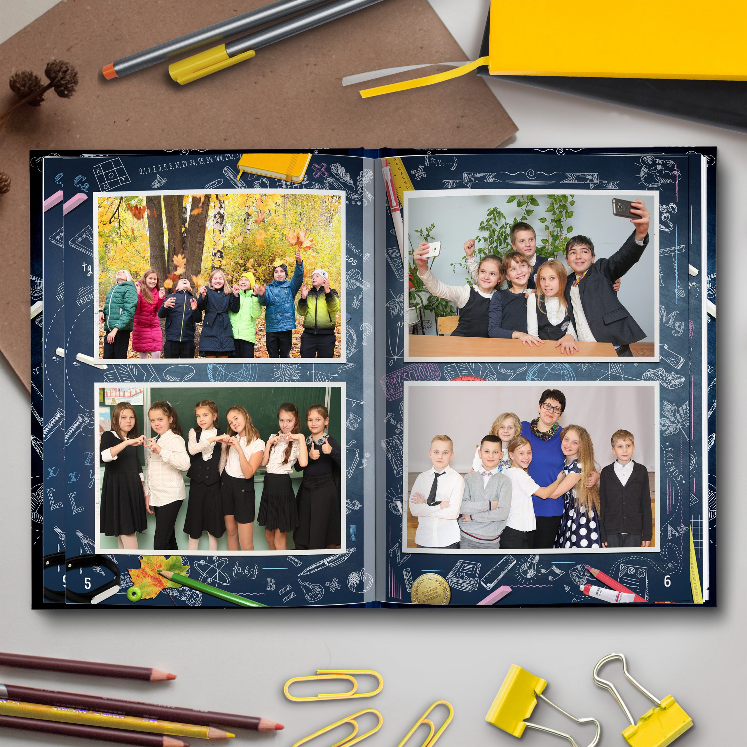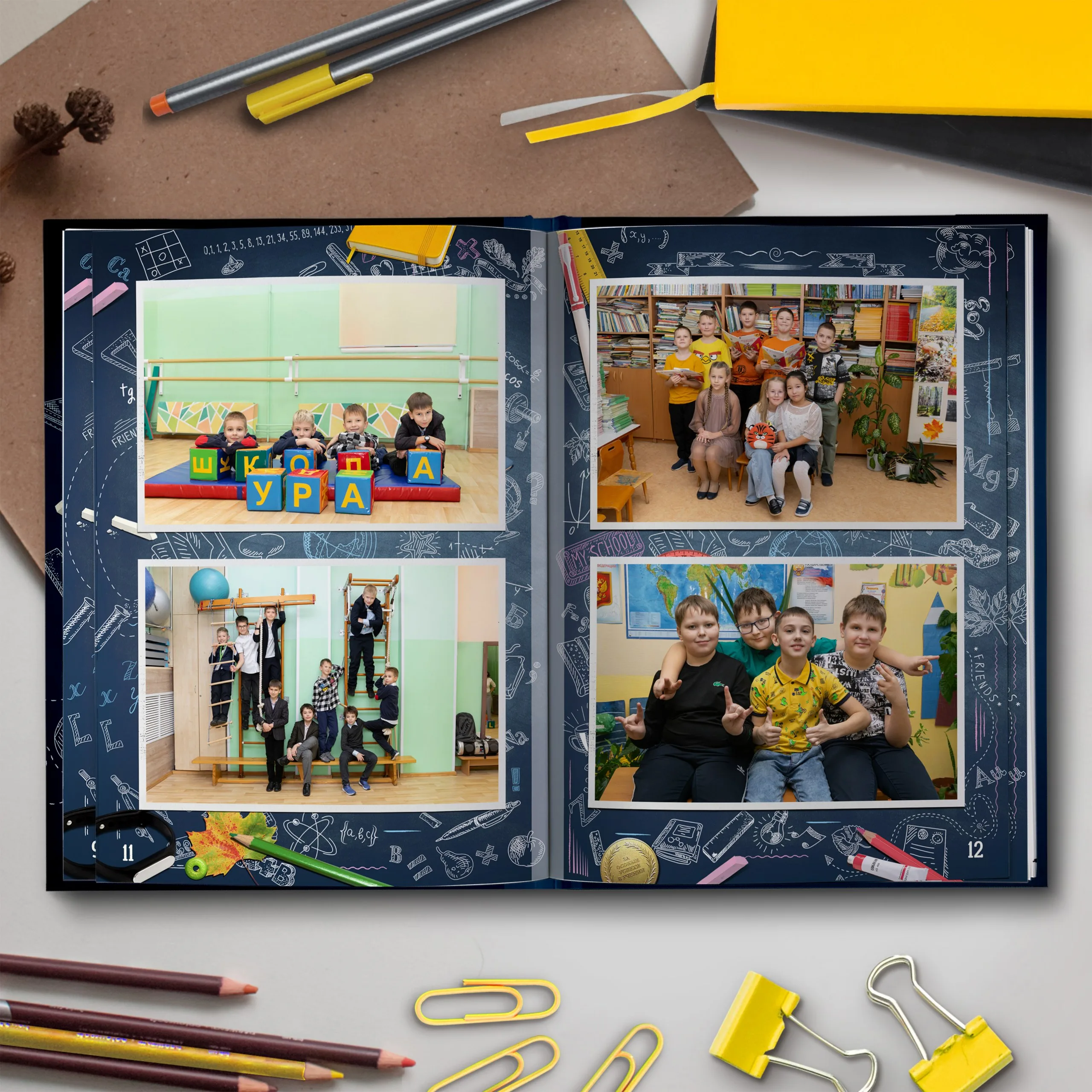 Самый запоминающийся аксессуар из школы – доска, плюс забавные рисунки и любимые фотографии – именно это делает наши выпускные фотоальбомы «Мел» такими популярными!