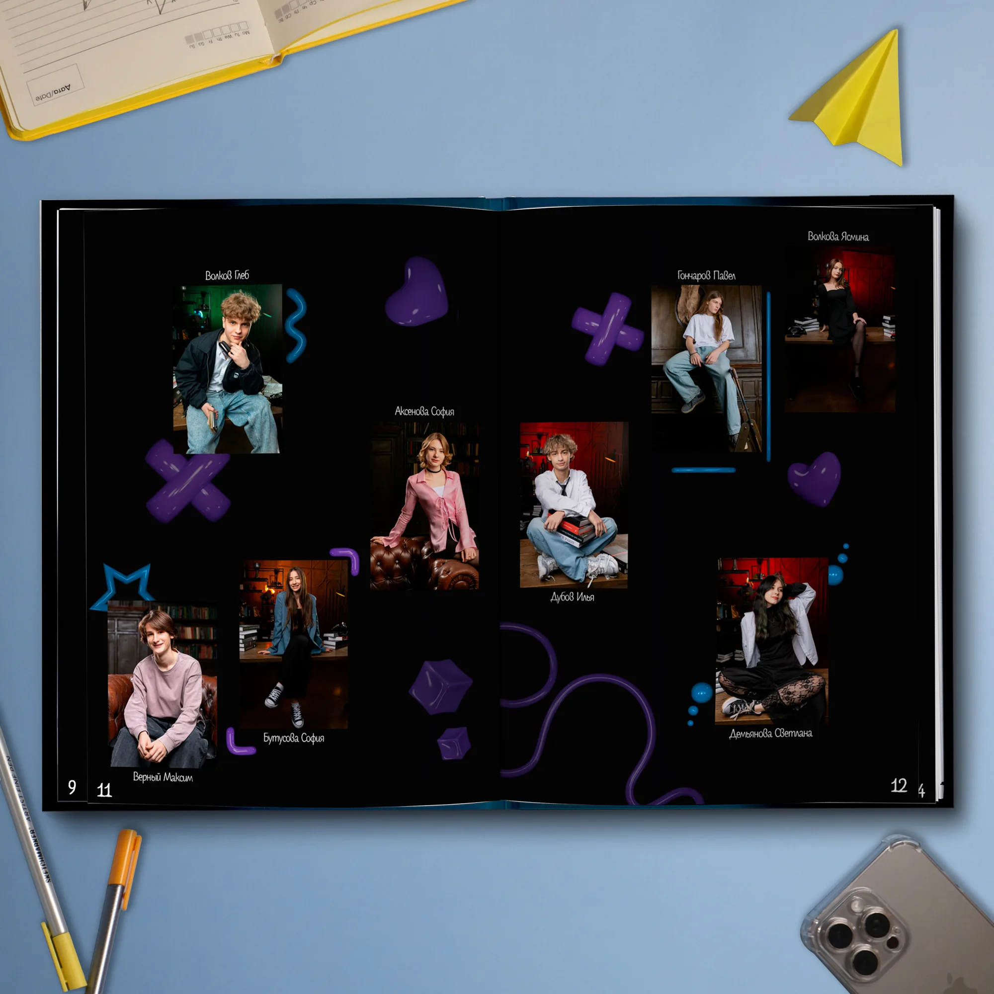 После личных страниц — разворот с общей фотографией класса