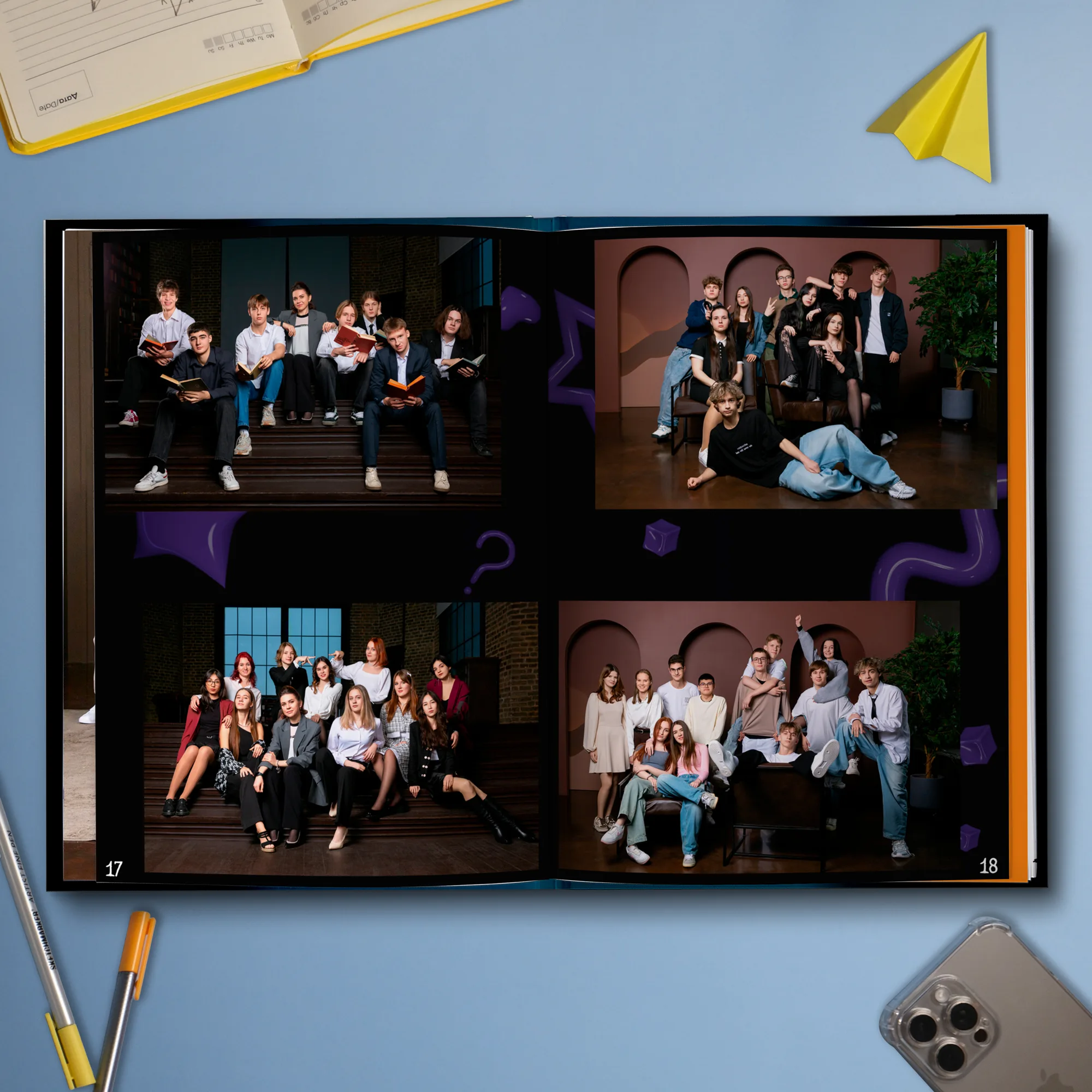 Последний разворот — общие репортажные фотографии класса (4 фото)